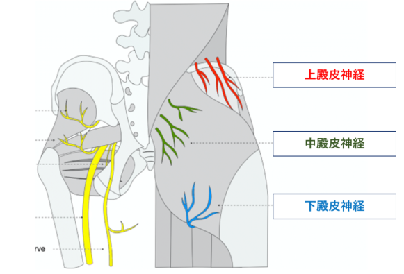 なぜ背骨? 腰椎や仙腸関節の状態が良くなると、上殿皮神経を形成する第1〜3腰神経や中殿皮神経の第1〜3仙骨神経の状態も良くなります。