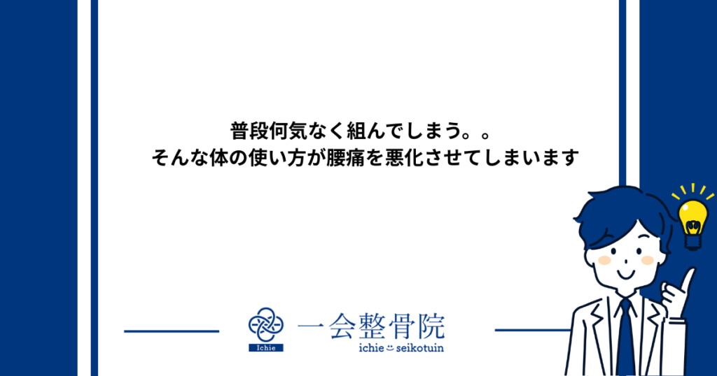 普段何気なく組んでしまう。。そんな体の使い方が腰痛を悪化させてしまいます